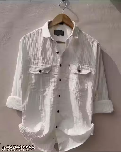 Product Details Name : Men's Classy Double Pocket Shirt Fabric : Cotton Blend Sleeve Length : Long Sleeves Pattern : Solid...