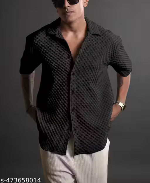 Product Details Name : Mini Square Pattern Men's Half Shirt Fabric : Popcorn Sleeve Length : Short Sleeves Pattern : Self-Design...
