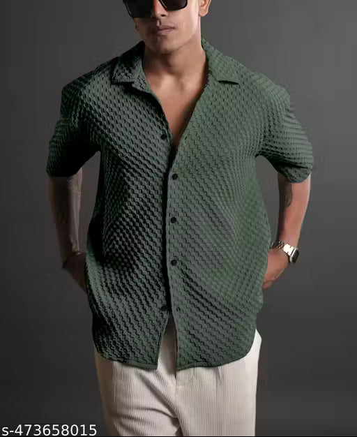 Premium Imported Men's Popcorn Fabric Self-Design Shirt - Three-Quarter Sleeves