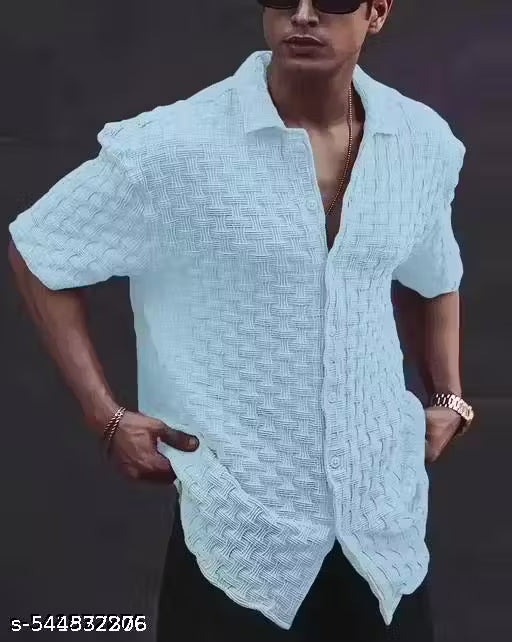 Stylish Crochet Net Half Sleeve Cotton Shirt
